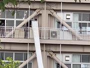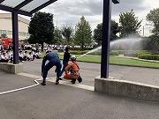 10月10日(金)の6時間目に、高校生と合同で、防災訓練が行われました。訓練では地震からの火災発生を想定した避難訓練を行い、下層階が火災に見舞われた際の降下訓練、放水訓練、消火器の使い方を学びました。最後に訓練に協力していただいた、下妻消防署の方より講話をいただきました。訓練を真剣に行い、講話に聴いていた姿が印象的でした。