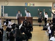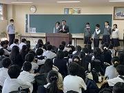 4月9日(火)に40名の新入生を迎え、10日(水)初めて3学年がそろった形で新年度が始まりました。午前中には各学年が学年集会を行い、生徒たちは新年度に向けた抱負をしっかりともつことができました。午後には、3年生が企画した中学校の対面式、2年生が主体となった部活動紹介がありました。対面式では、3年生による学校行事の紹介やアイスブレイクの漫才披露が行われました。最初緊張していた1年生も和やかな雰囲気の中、笑顔が見られました。部活動紹介では、2年生が自分の所属する部活を分かりやすく紹介し、1年生は各部の特徴や雰囲気を知ることができました。高校生との対面式では、生徒会長からのメッセージや応援団の熱いエールに励まされ、初日が終わりました。