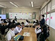 「先日、茨城frogsの菅原さんにお越しいただき、探究Dreamの学習を行いました。「ワクワクする未来」というテーマで、生徒同士が考えて付箋に書き出してみたり、自由な発想でグループの人と意見交流したりすることができ、有意義な時間となりました。」