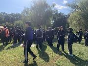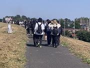 10月24日(金)に高校生と合同で、長距離(約23km)を級友と共に歩くことで心身を鍛えるとともに、郷土の自然に親しみなら生徒相互の連帯感を深め、生徒が楽しく学校行事に参加することを目的とする為桜踏破会が行われました。中学生は、歩く速さの違いで、スピード、ノーマル、のんびりの3区分に分かれ、各自のペースで23kmの踏破を目指しました。最初のうちは余裕のあった生徒たちも、昼休憩を挟み、後半になってくると疲れもたまってきましたが、絶対にゴールするという気持ちのもと、ほとんどの生徒が完歩することができました。