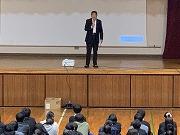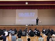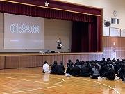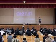 12月23日(火)に、冬休みに向けた全校集会が高校生と合同で行われました。集会に先立ち、表彰式が行われ、7名の生徒が中学校では表彰されました。おめでとうございます!次に、高校生で上位大会へ進出した部活動の壮行会が行われ、応援団の指揮のもと、高校生と一緒に上位大会へ進出した部活動へ熱いエールを送りました。全校集会では、始めに校長先生より今年一年の振り返りからアドバイスをいただき、生徒支援部の先生より冬休みの過ごし方について講話していただき、最後に、進路指導部の先生から冬休みの学習についての講話をいただきました。内容が盛りだくさんな集会でしたが、真剣に話を聞く、附属中生の姿が印象的でした。