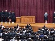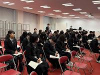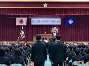 附属中の新入生40名のが級監から一人一人呼名され、学校長より入学が許可されました。新しいやや大きめの制服を着て緊張した面持ちながらも、真剣に校長先生の話を聞いている姿が印象的でした。これから3年間頑張っていきましょう!!