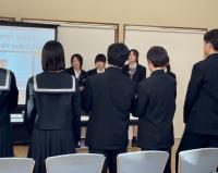 12月10日(水)に「令和7年度 下妻市小中学校英語フォーラム」が開催されました。本校では1年生を中心としたメンバーが参加しました。今回のフォーラムの中学校の部は「下妻市の魅力度アッププロジェクト」というテーマのもと、下妻市をよりよい町にするためのアイディアを市内各中学校の参加生徒が英語で発表するというもので、本校生は「下妻産の梨を通じてもっと多くの人に下妻市を知ってもらおう」というタイトルでスピーチを行いました。発表ではふるさと納税を活用して下妻市の知名度を更に向上させるための方策として、下妻産梨を使った製品やノベルティ、梨狩り体験チケットを返礼品として開発することや、海外の大きな市場となる国への更なる輸出拡大・促進を提案しました。発表終了後、審査員の先生方からは「明るく元気でチームワークが素晴らしい」という評価をいただきました。参加生徒たちは2か月近くに渡って取り組んできた練習の成果を十分に発揮できたことに大きな手ごたえと自信を得ていた様子でした。
