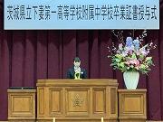 3月14日(土)に、下妻第一高等学校附属中学校の卒業証書授与式が行われ、附属中2期生の40名が巣立ちの日を迎えました。厳粛な空気の中、卒業生は3年生が在校生と保護者が待つ体育館へ入場し、拍手で迎えられました。卒業証書授与では、担任の呼名による返事、卒業証書を受け取る姿は卒業生らしく堂々としていました。また、卒業生に向けた在校生からの送辞では、これから附属中を引き継ぐ強い決意が感じられました。卒業生からの答辞は、在校生や職員、そして保護者の方々への感謝の思いがたくさん詰まった大変心温まるものでした。厳粛な雰囲気の中にも、あたたかく感動的な卒業式となりました。卒業式後の最後の学級活動では、担任やクラスメイトとかけがえのない時間を過ごし、在校生、保護者の方々、職員から大きな拍手で見送られながら巣立っていきました。附属中2期生の皆さん保護者の皆さん、ご卒業本当におめでとうございます。心よりお祝い申し上げます。