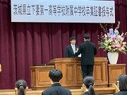 9月29日(月)に行われた高円宮杯第77回全日本中学校英語弁論大会茨城県大会に3年生1名が出場しました。予選会にて出場者55名中、上位9名に選出され、決勝弁論に出場、読売新聞社水戸支局長賞を受賞しました。練習の成果を発揮し、堂々とした素晴らしい発表を行いました。
