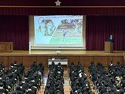 9月9日火曜日、下妻警察署の方にお越しいただき、不審者が学校に侵入した際の対応にについて、改めて学びました。